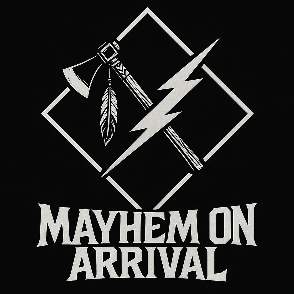 The Mayhem On Arrival logo isn’t just a graphic, the tomahawk represents a part of my heritage, a symbol of strength, readiness, and warrior spirit that’s been passed down through generations. The lightning bolt cutting through the center represents the wrath, power, and authority of God. It’s a symbol of righteous force, swift, unavoidable, and undeniable. It reminds us that no matter how prepare